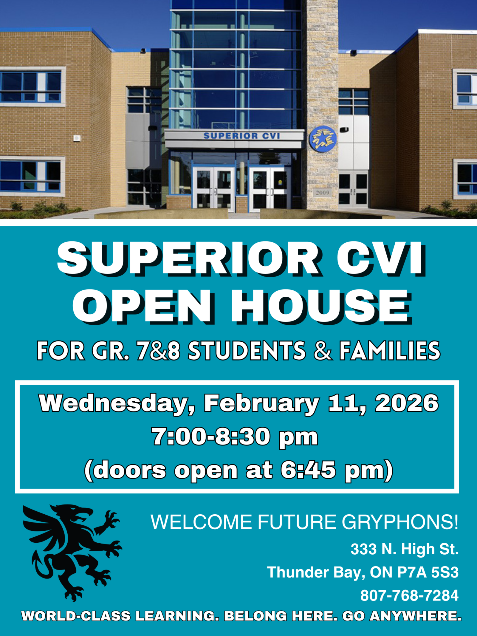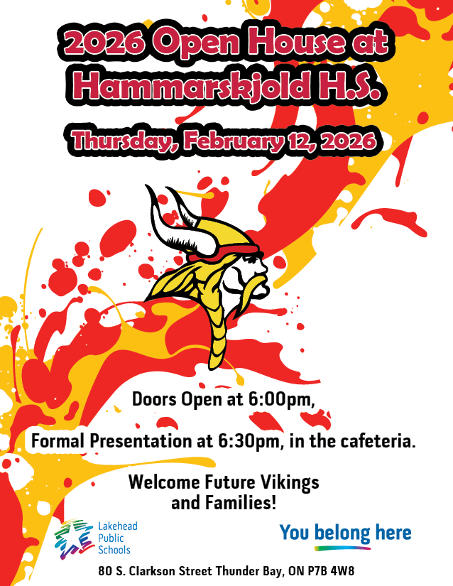 Students wishing to register for grade 9 at a Lakehead Public Schools high school, who do not already attend one of our LPS elementary schools, can fill out the external registration form found in the link below. External registration forms will also be open at each of the Open Houses. The form is to be filled out and emailed or returned to the desired high school by February 23, 2026.